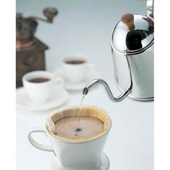 使用滤纸滴漏法冲泡咖啡时,滤纸会紧贴在滤杯壁上,如果没有这些沟槽的话,注入热水后,空气就只能从杯底的滤孔排出,而剩下排不出的空气就会从闷蒸状态中的咖啡粉表面排出,咖啡粉表面破出一个洞,冷空气进入,咖啡便得不到充分闷蒸。如果是用法兰绒滴漏的话,空气可以从任何地方排出,而热水渗入法兰绒布中如皮膜般具有保温作用。