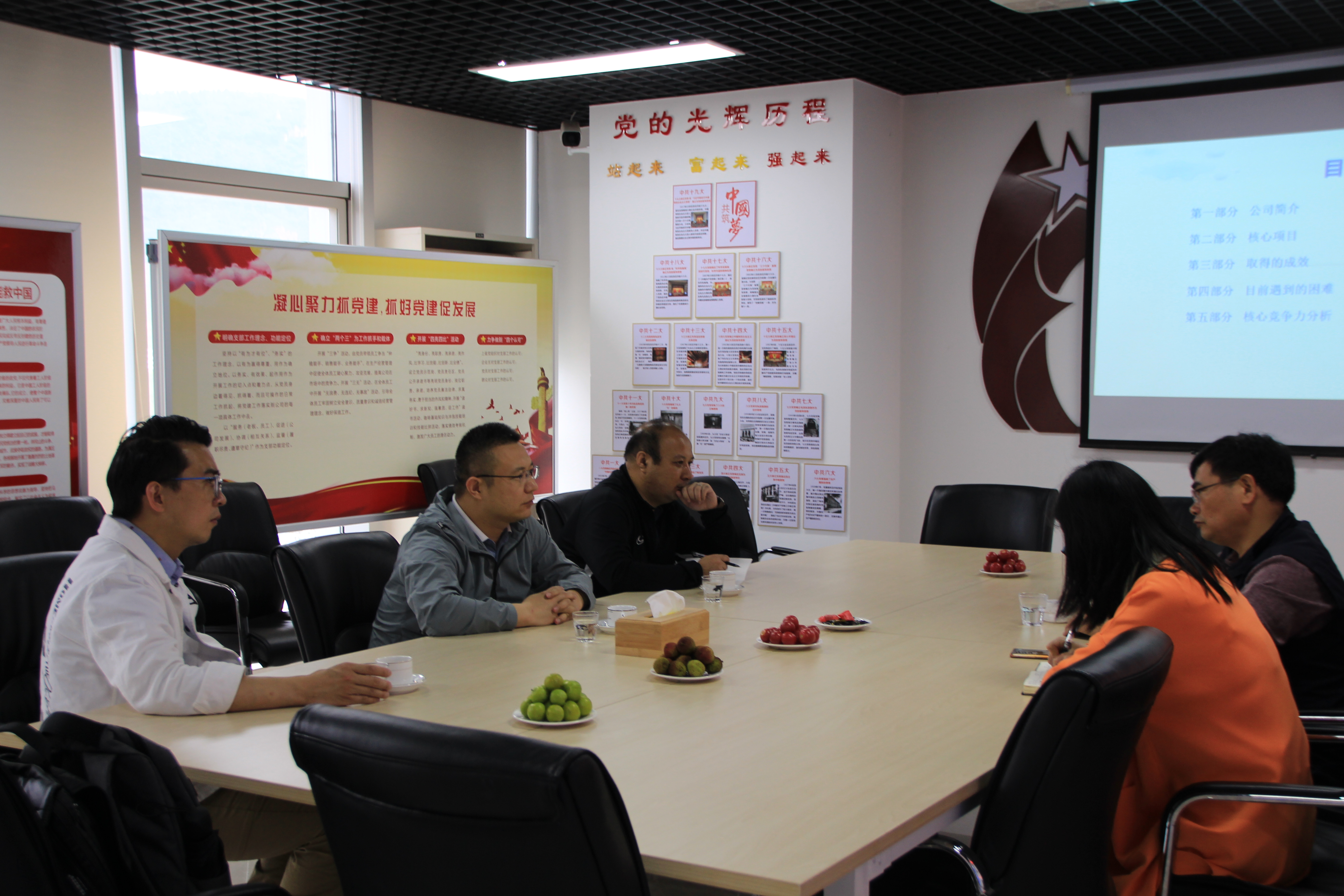 朱翔辉对公司党建工作做了报告,提出党建分国内和国外,并积极发挥党员作用,公司董事长尹新华了汇报公司“走出去”,在“一带一路”上发展情况,同时也就公司走出去遇到的困难进行了汇报。