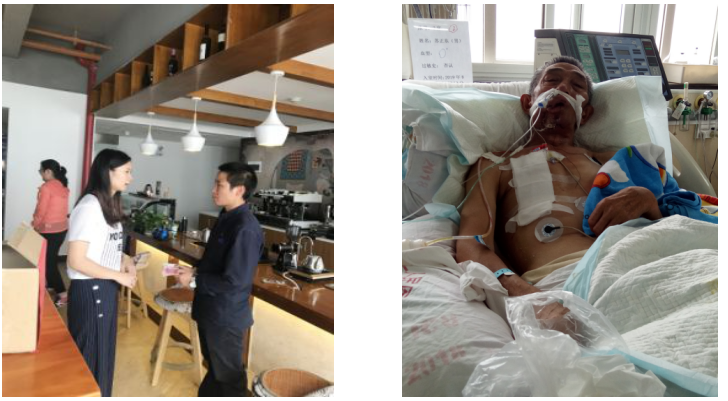 组织委员将募捐的钱交给舒飞 在红会医院接受治疗的职工家属