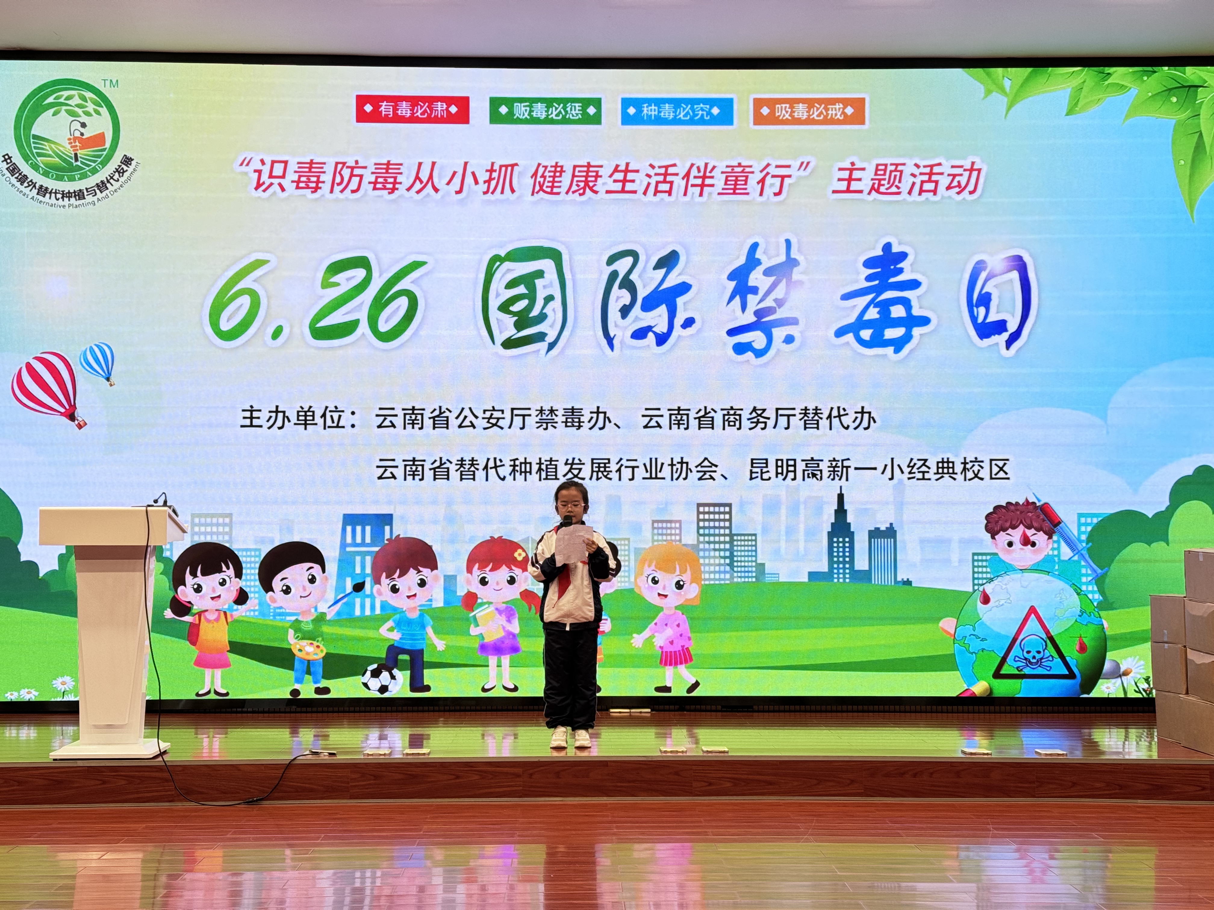 6月23日,公司参与云南省禁毒委员会办公室、云南省商务厅替代办、昆明高新一小经典校区联合举办“不忘禁毒初心 牢记除源使命”之“识毒防毒从小抓 健康生活伴童行”暨“6.26国际禁毒日”主题宣传活动,现场捐赠15000册印有替代行业宣传简介的作业本,将替代种植发展与禁毒宣传工作有机结合,打造中国禁毒替代种植品牌,为境外罂粟替代种植和高质量发展营造良好舆论环境。